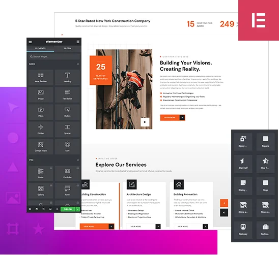 We used #1 free WordPress website builder(Drag & Drop) – Elementor as page builder. This page builder is Simple. Powerful. Flexible. Experience the power of 100% visual design and build websites that load faster, and speed up the process of building them.